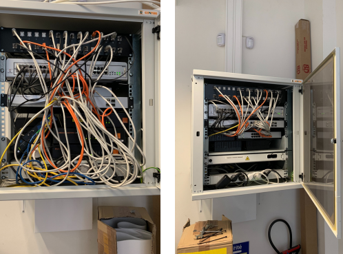 Du câble informatique qui sera relié à votre PC de bureau ou à votre poste téléphonique jusqu’à votre baie de brassage (cf photo avant/après) qui sera l’élément central de vos accès internet et téléphonie.